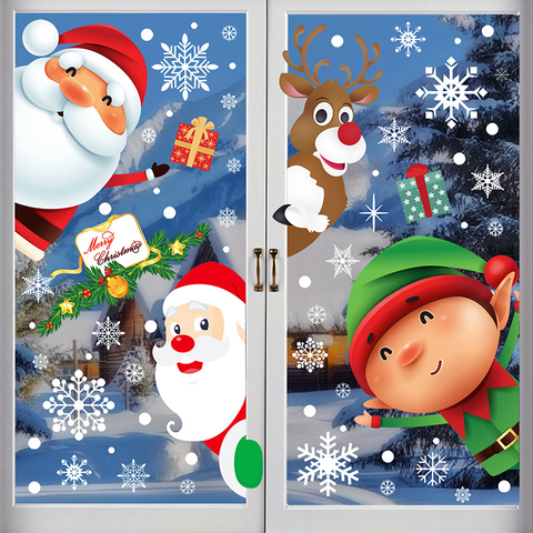ニクロ新着7個メリークリスマスパーティーホームデコレーション雪だるまサンタクロースエルクデザインPVCガラスステッカー壁用デカール