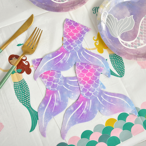 Nicro Neuankömmling Lila Meerjungfrau Thema Einweg geschirr 20 Stück Meerjungfrau Schwanz form Serviette Alles Gute zum Geburtstag Party zubehör