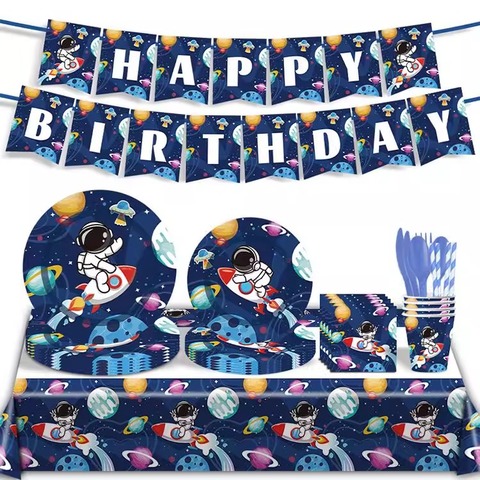 Nicro Factory Price Astronauts Theme Einweg geschirr Set Space Design Papp teller Geburtstags feier Party Supplies Favor