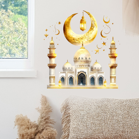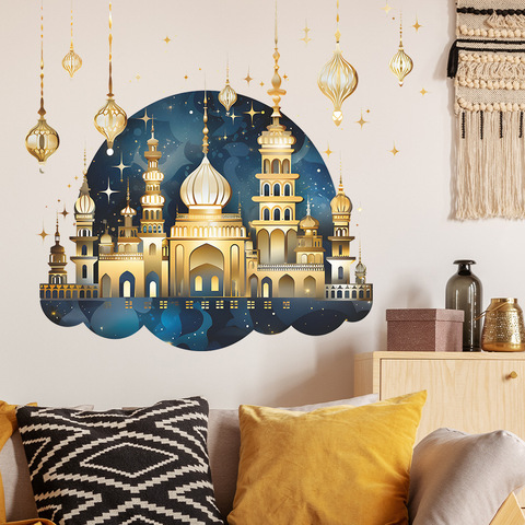 Nicro Atacado Auto-Adesivo de Parede Muçulmano Castelo Templo Lanterna Design para Home Decor Ramadan Photo Background PVC
