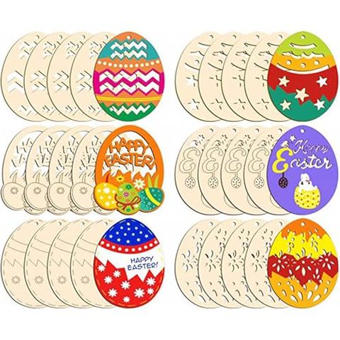 ニクロ工場卸売 6個 DIY イースター木製卵型クラフト ホーム教室吊り下げ装飾 フェスティバルパーティー用品