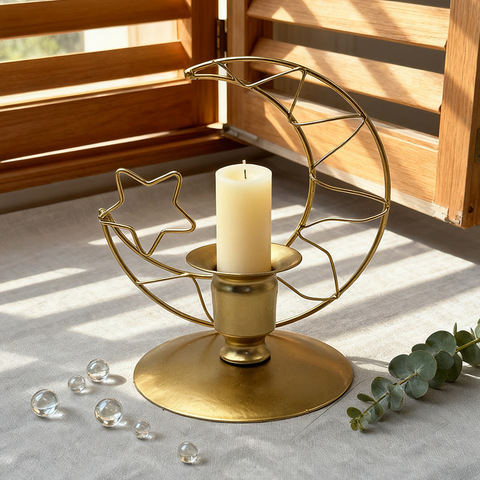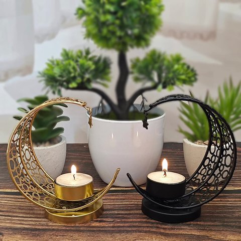Nicro Hot Sale Artesanato Religioso Metal Titular Em Forma De Lua Castiçal para Celebrações Muçulmanas Eid Mubarak Ramadan Decorações