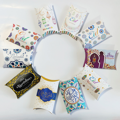 ニクロ環境にやさしいEid Mubarakピローシェイプギフトボックスラマダンキャンディークッキー包装折りたたみ可能紙箱ムスリムパーティー用品