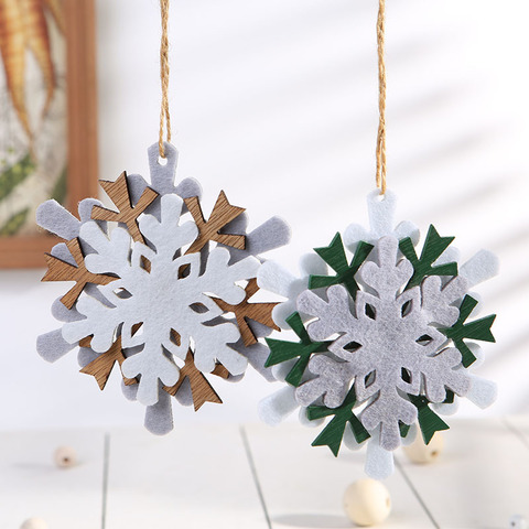 Nicro Atacado Snowflake Shaped Feltro Artesanato De Madeira Luxo Pendurado Decoração para Árvore de Natal Party Supplies Pingente