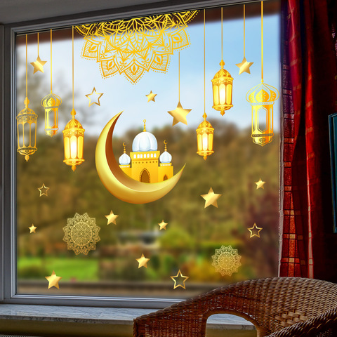 Nicro's Hot Selling Eid Mubarak Estrela Lua Lanterna Design PVC Auto-adesivo Adesivo de Parede Ramadan Decalques de Parede para Janela