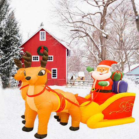 Nicro 1.3*2.2เมตรกวางซานตาคลอสกวางเอลก์การดึงเลื่อนระเบิดขึ้นกันน้ำเส้นใยโพลีเอสเตอร์ตกแต่งกลางแจ้งคริสต์มาสพองได้